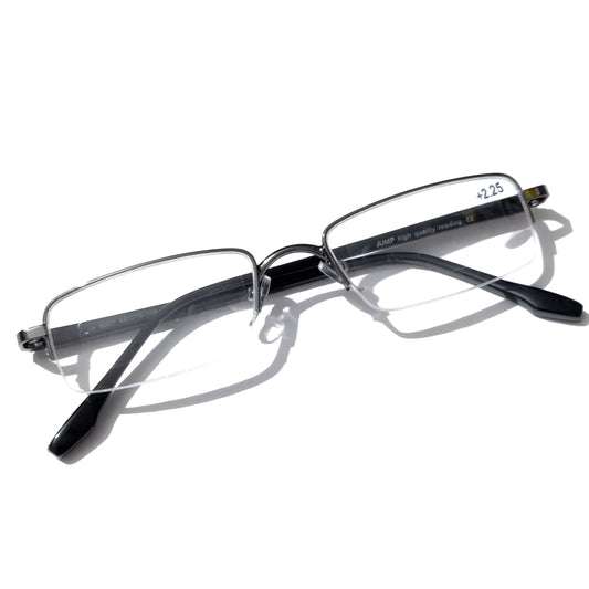 Supra Reading Glasses - Grey Rectangle Metal Frame with Spring Hinges