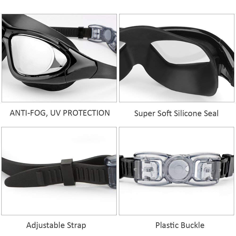 Clear Lens Wide Vision Swimming Goggles with UV and Anti Fog Protection for Adult Men Women