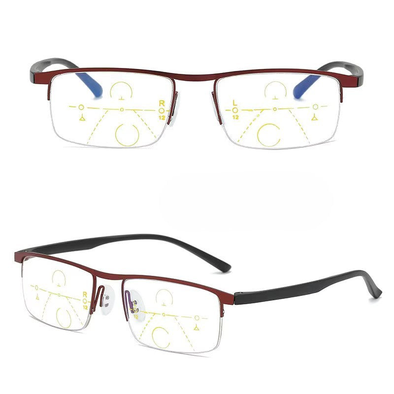 Metal Half Frame Supra Progressive Reading Glasses with Anti Blue Light Lens