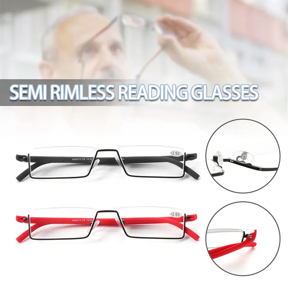 Portable Eyeglasses Semi Rimless Reading Glasses Half Frame with Case Reader