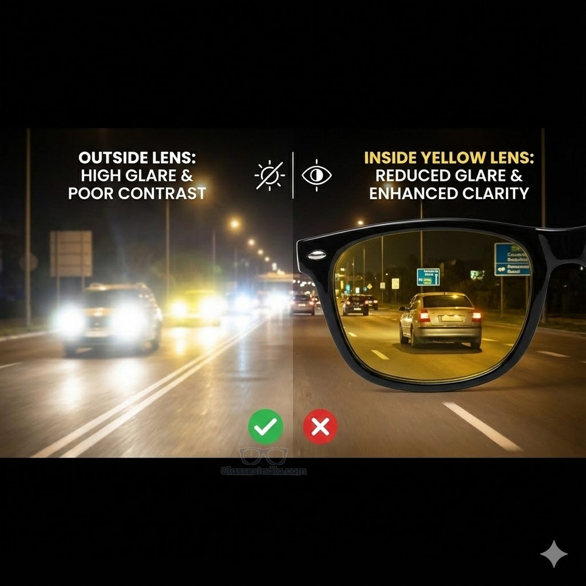The yellow lens technology filters out scattered blue light, helping you see objects, road markings, and signs more clearly at night. This improved contrast can make driving in dimly lit conditions feel significantly easier and less stressful.