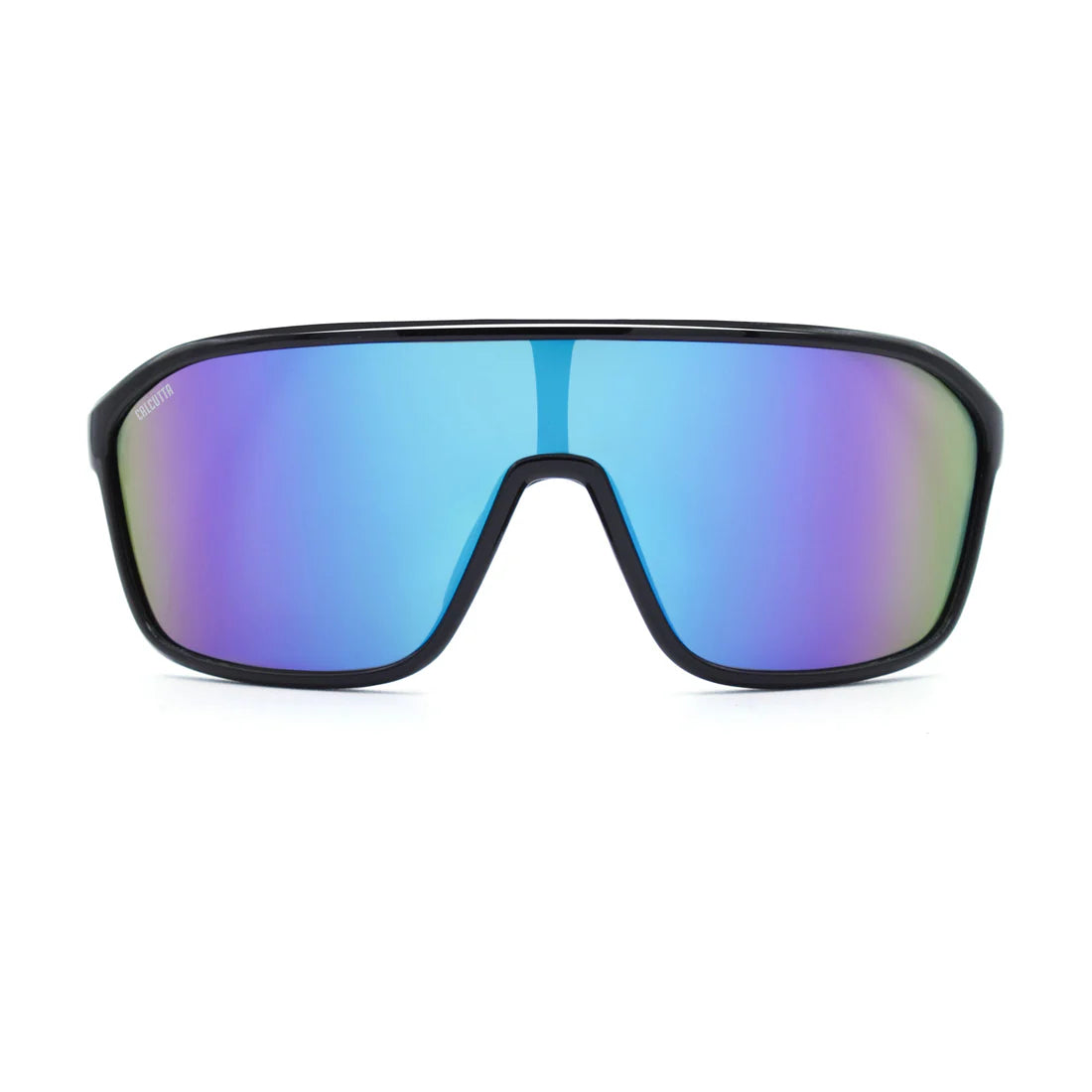 Black Polarized Sports Sunglasses Blue Mirror Lens