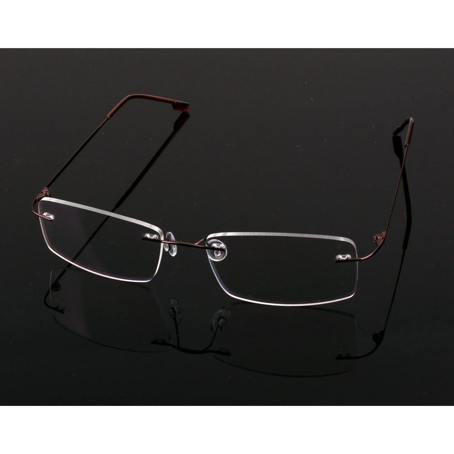 Brown Rimless Frameless Rectangle Reading Glasses For Men Women