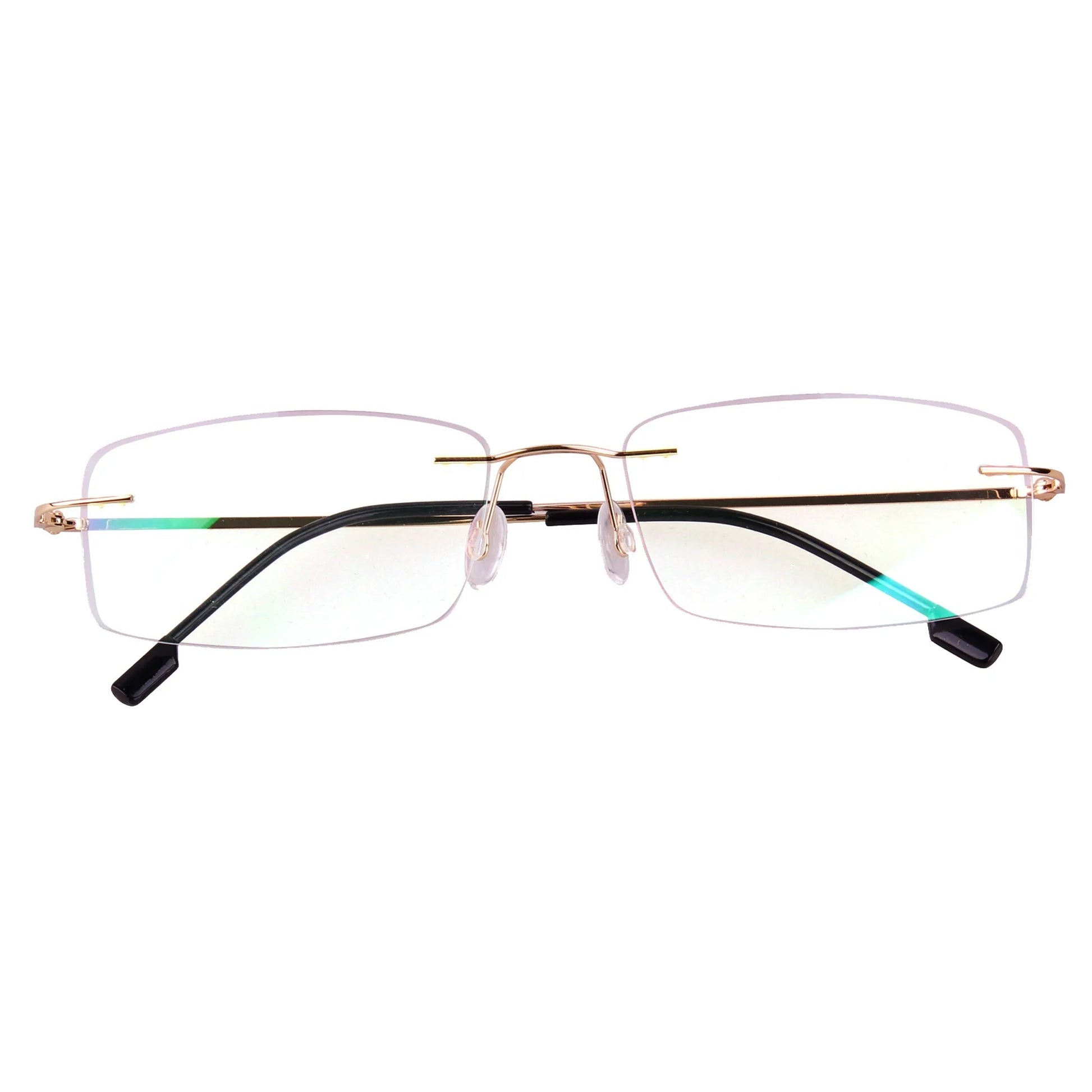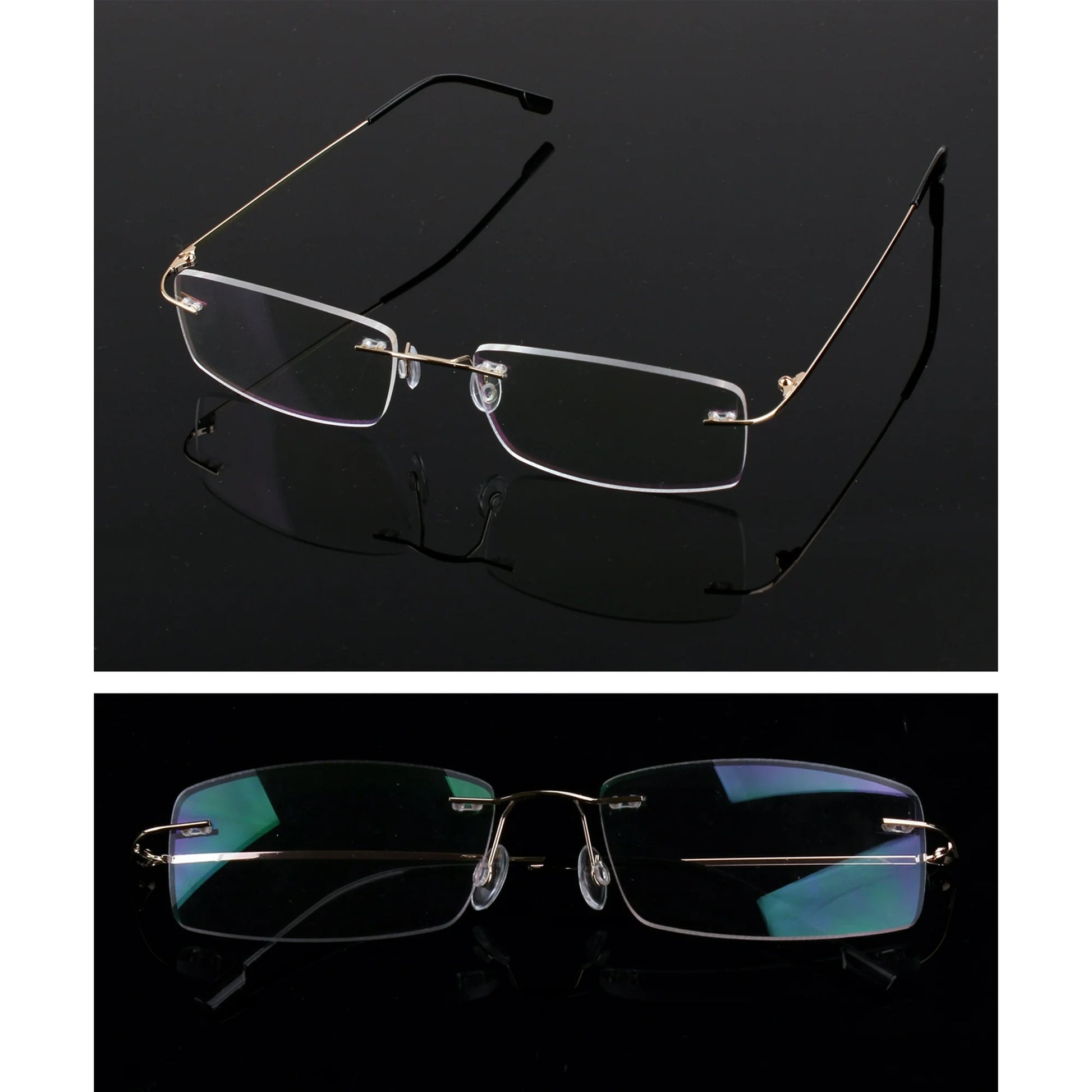 Gold Rimless Frameless Rectangle Reading Glasses For Men Women