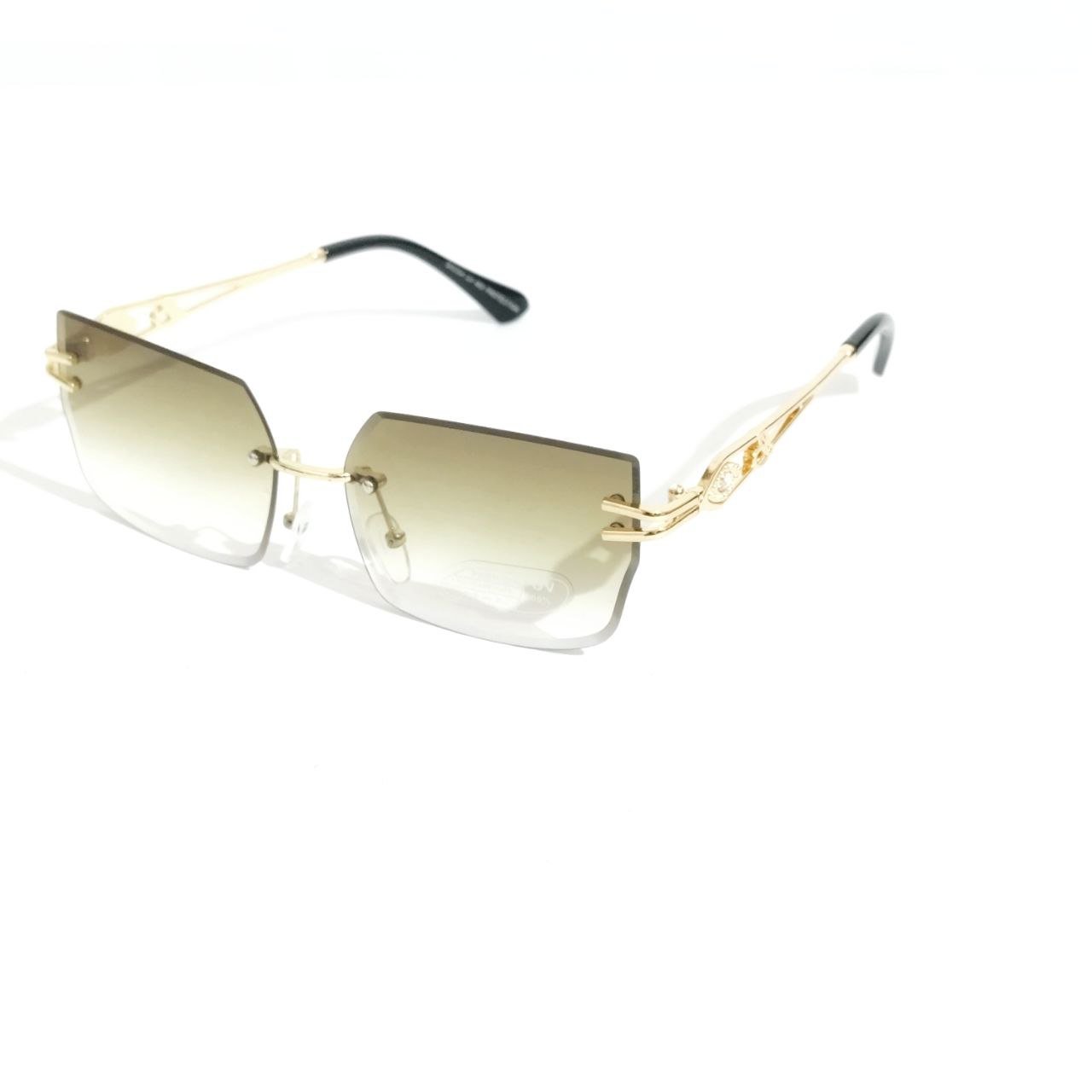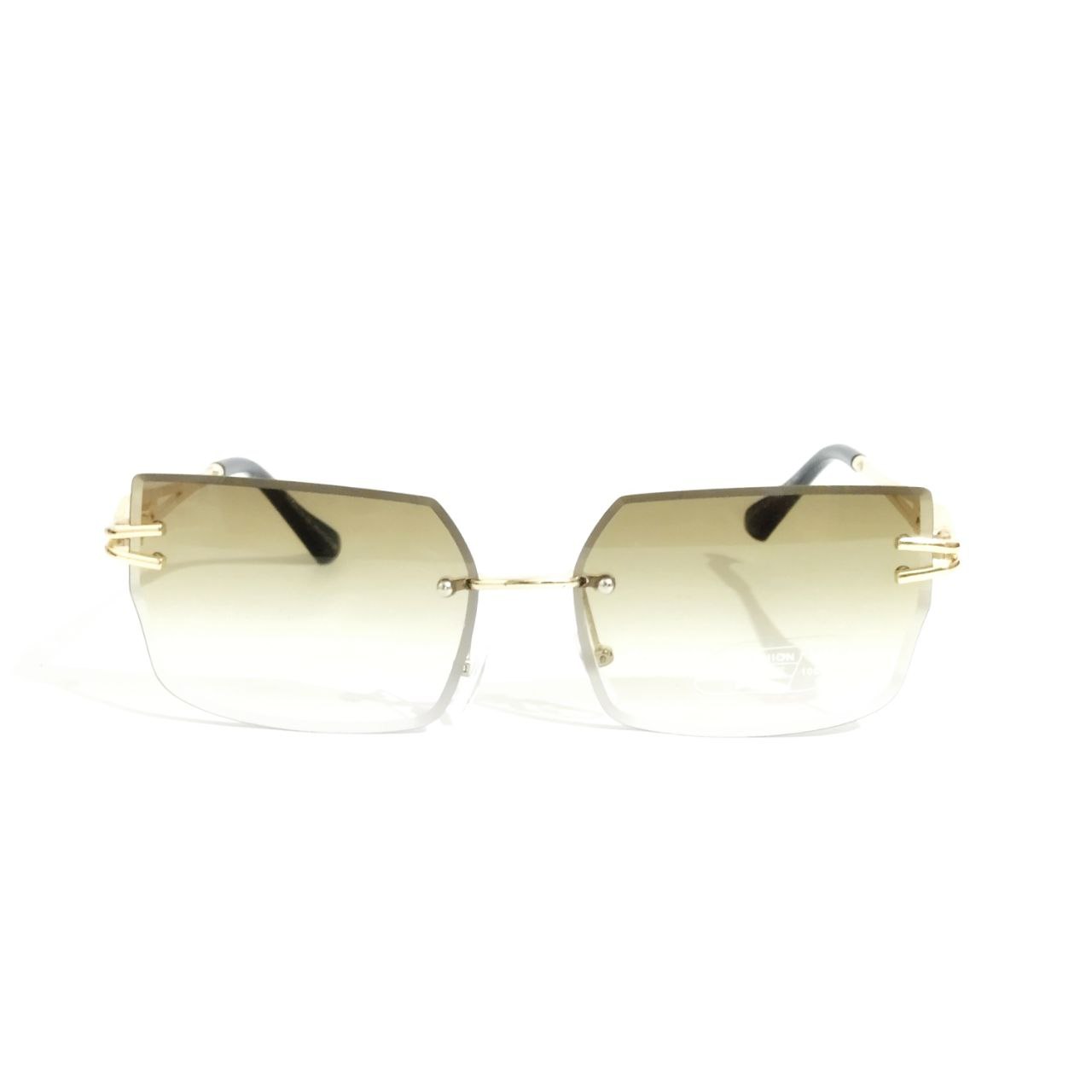 Green Lens Gold Frame Chic Rimless Sunglasses