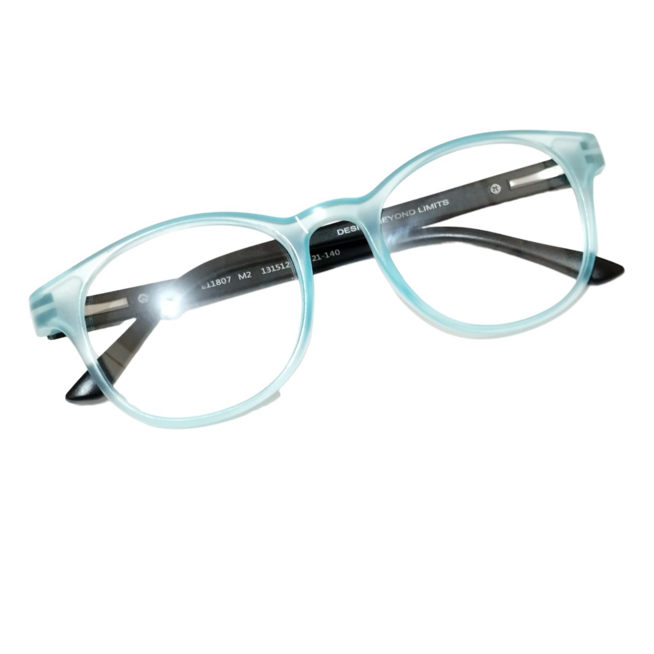 Light Blue Black Round Full Rim Spectacle Frame Progressive Lens Glasses 11807