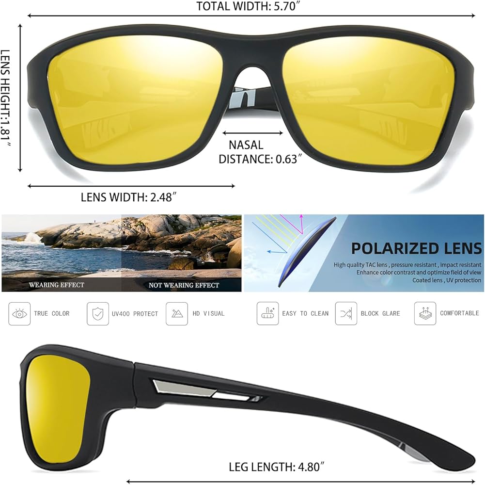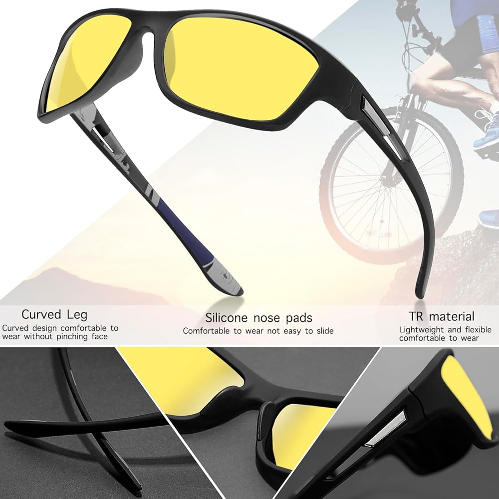 ✔️ Improved Night Vision: Nano yellow lenses and polarization ensure clearer and sharper vision after dark.