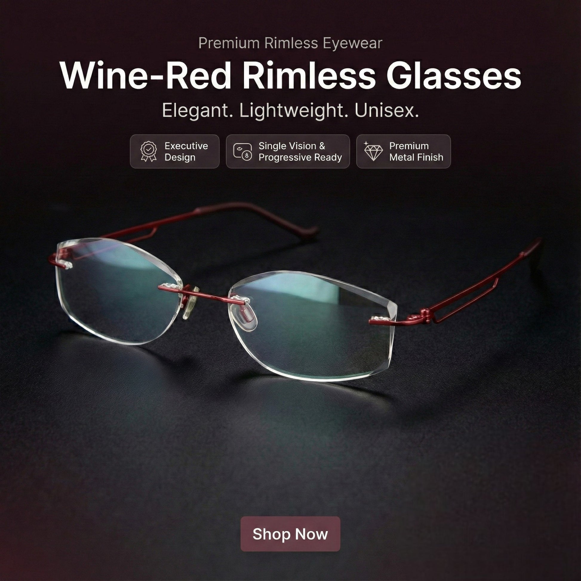 Premium Rimless Glasses in Wine Red – Model PR8005