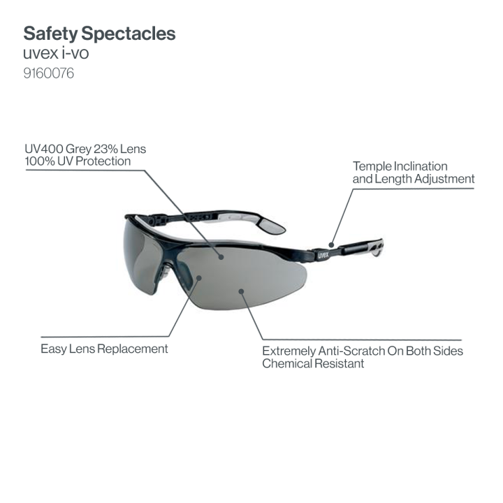 Uvex I-VO Grey Safety Glasses 9160-076 UV400 Protection